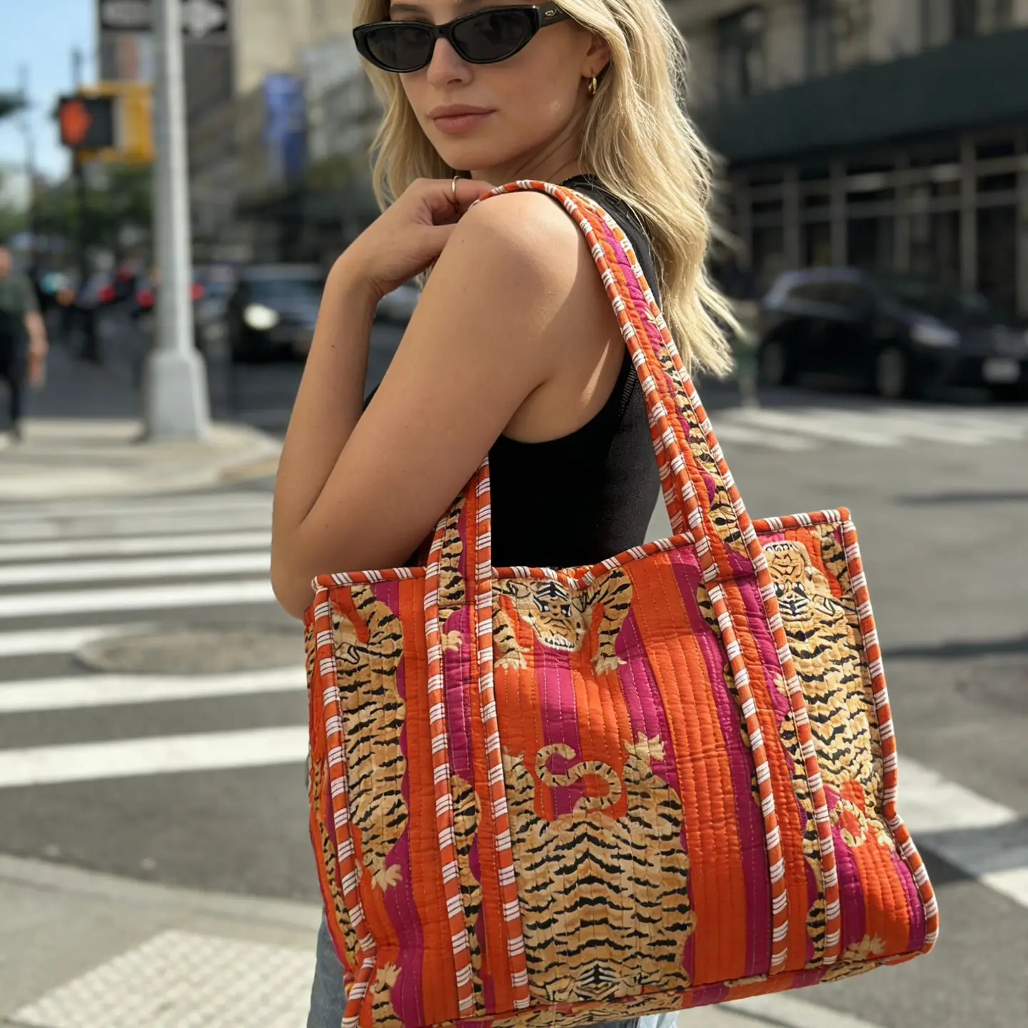 Apportez une touche de couleur et d’exotisme à votre quotidien avec ce sac cabas en coton 100 % naturel avec fermeture éclair, confectionné artisanalement en Inde.
