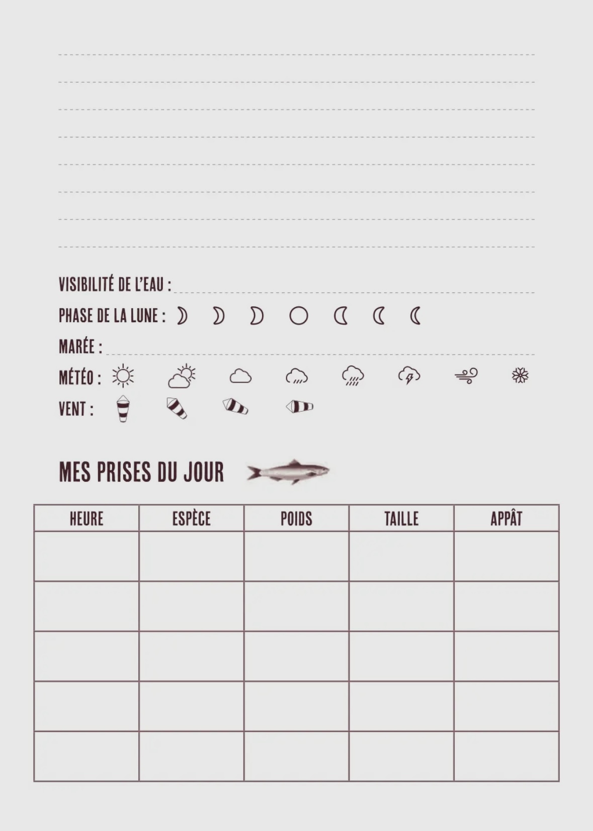 Carnet de notes/ Pêche
