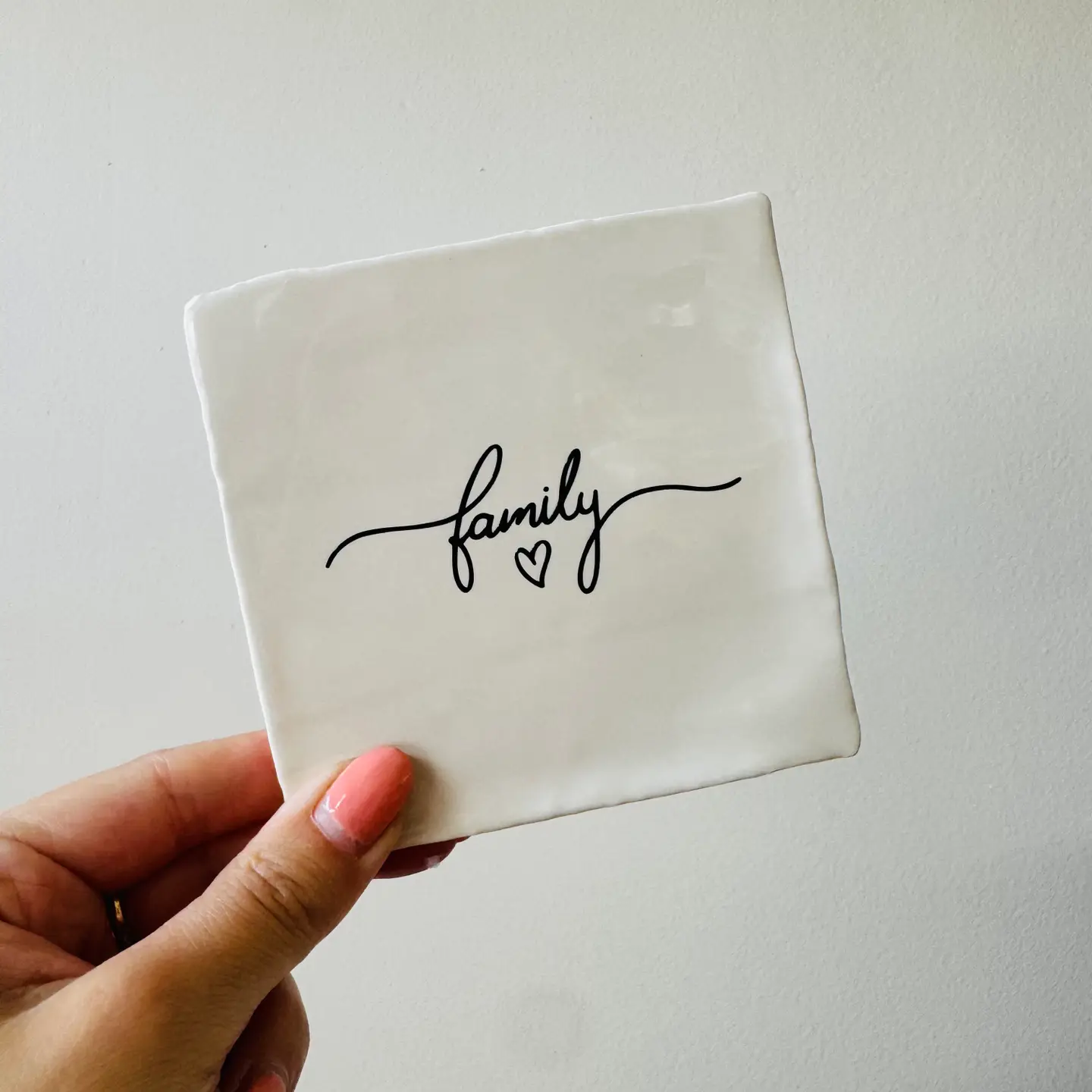 Un beau carreau avec un joli texte, pouvant servir d’objet déco ou de sous tasse/ Disponible en plusieurs variantes en boutique/ L’épaisseur du carreau est de 0,6 mm.