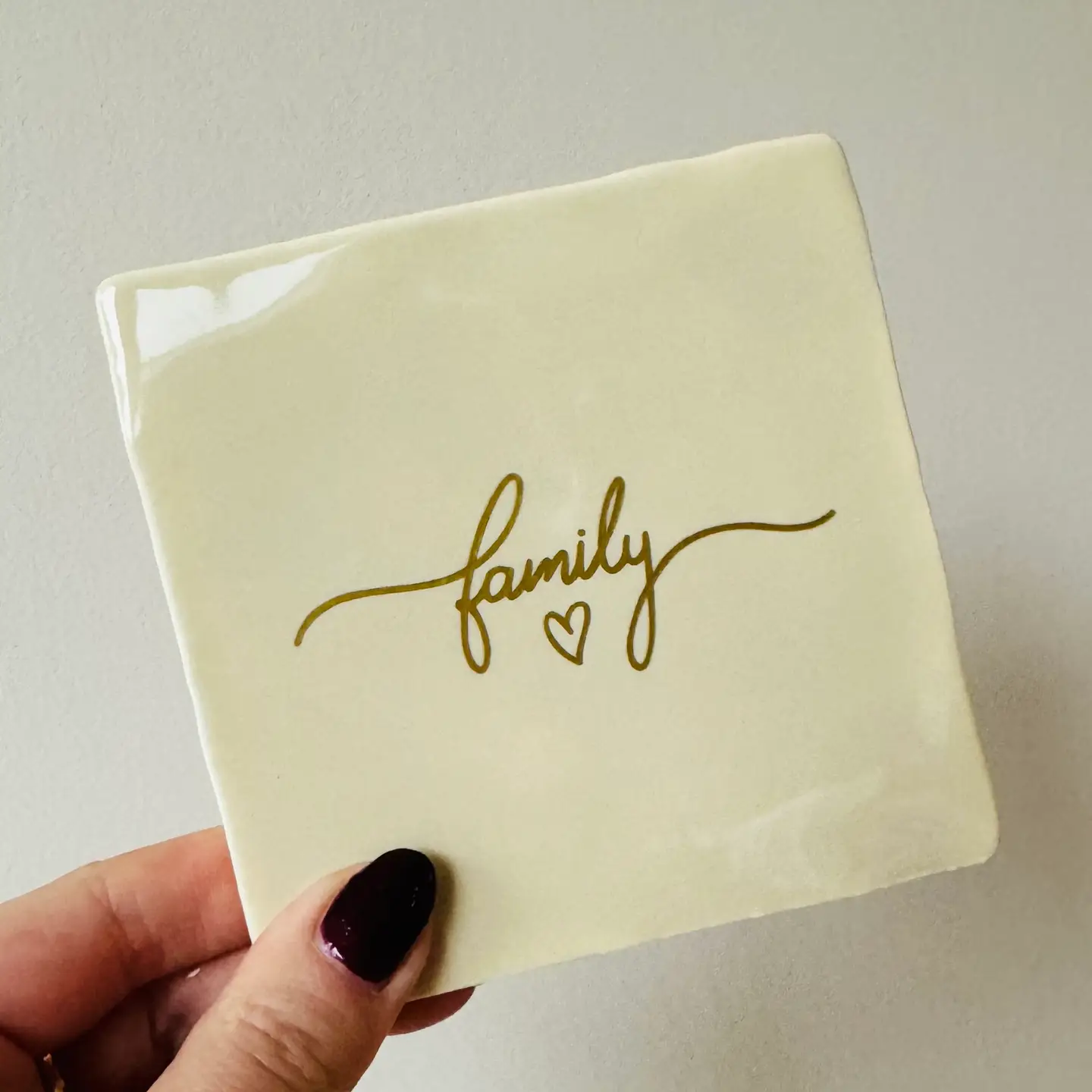 Un beau carreau avec un joli texte, pouvant servir d’objet déco ou de sous tasse/ Disponible en plusieurs variantes en boutique/ L’épaisseur du carreau est de 0,6 mm.