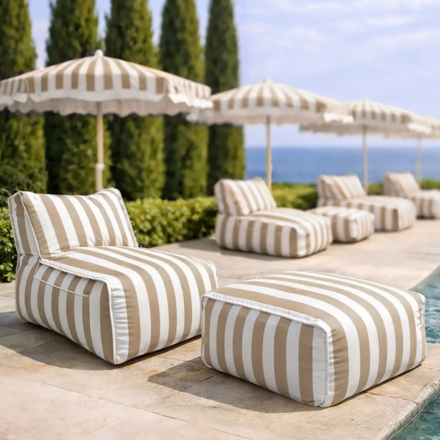 Le fauteuil Flavio se distingue par son design moderne et audacieux, alliant confort optimal et esthétique. Son revêtement rayé bouton d’or et blanc apporte une touche lumineuse et tendance à une terrasse, un balcon ou un jardin. Ses rayures élégantes et son coloris chaleureux, évoque l’univers bord de mer et les beaux jours. Ce type de fauteuil est reconnu pour son confort modulable, idéal pour se détendre. Le format compréssé facilite le transport, l’installation et l’adaptation à différents espace.
