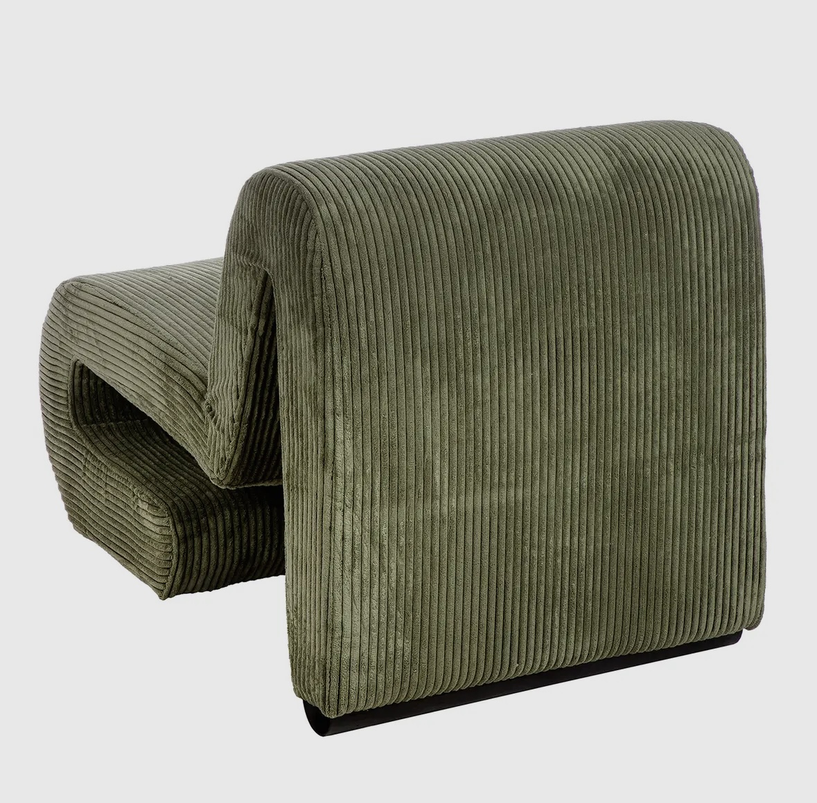 Fauteuil en velours côtelée Kaki/ Dimensions:Hauteur 59 x L63 x P82 cm
