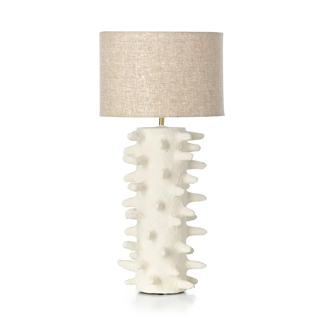 Avec sa silhouette sculpturale et ses matériaux naturels, la lampe de table Gena est idéale pour une console, encadrer un espace de vie ou créer une douce lumière dans une chambre. Chaque lampe est fabriquée individuellement, et les variations subtiles de texture affirment sa nature artisanale. Ces différences uniques transforment chaque pièce en une expression artistique distincte, garantissant que deux lampes ne sont jamais identiques.
