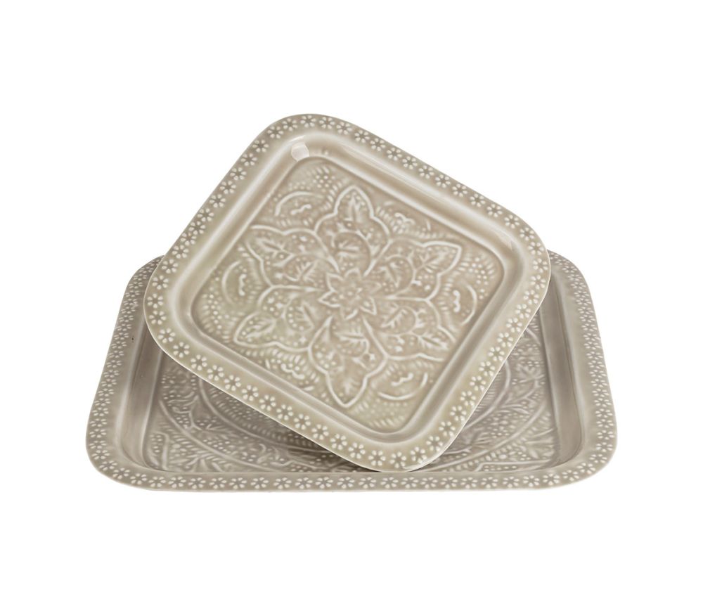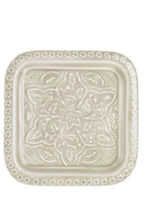 Plateau en fer beige, existe en 2 tailles et 2 formes.