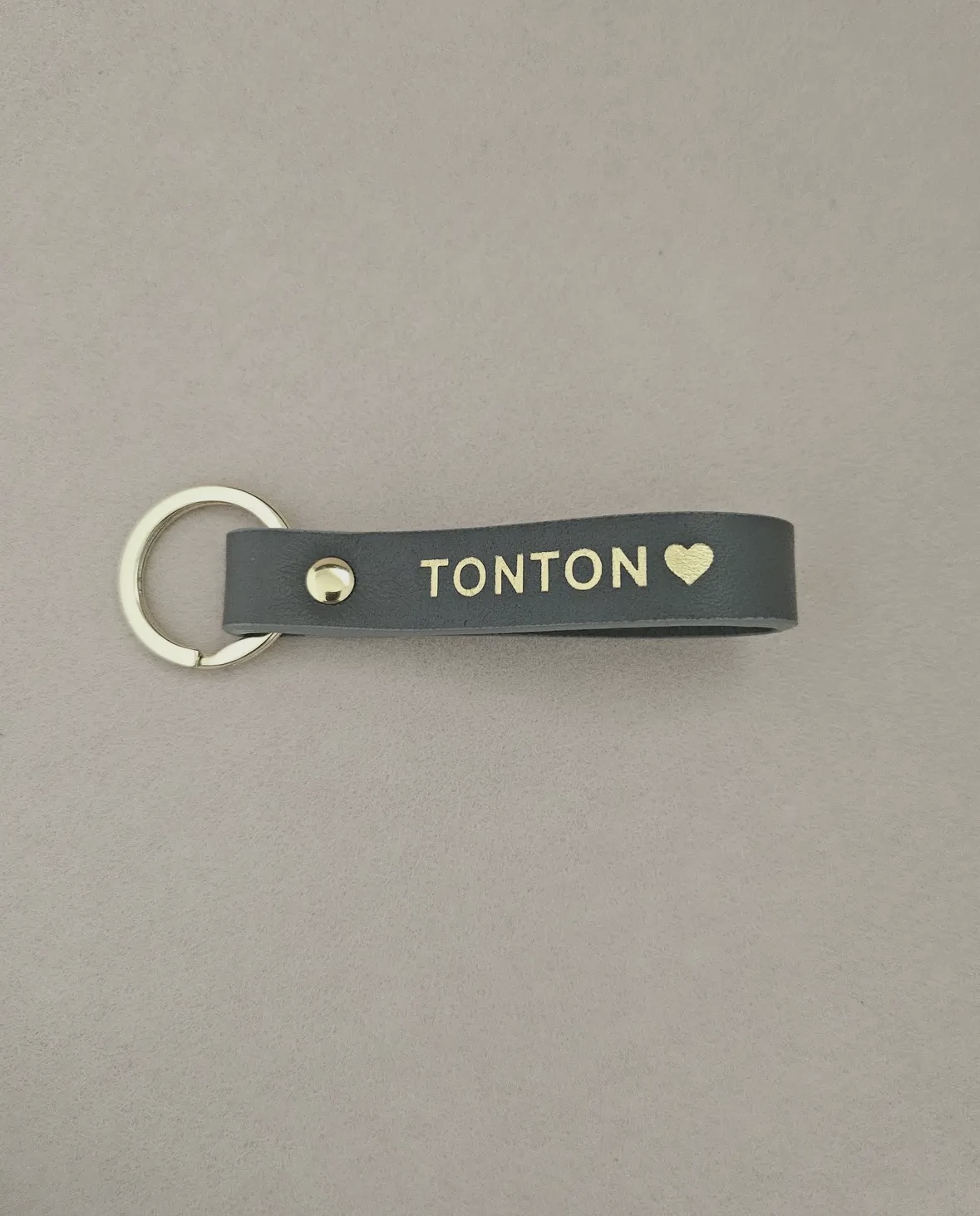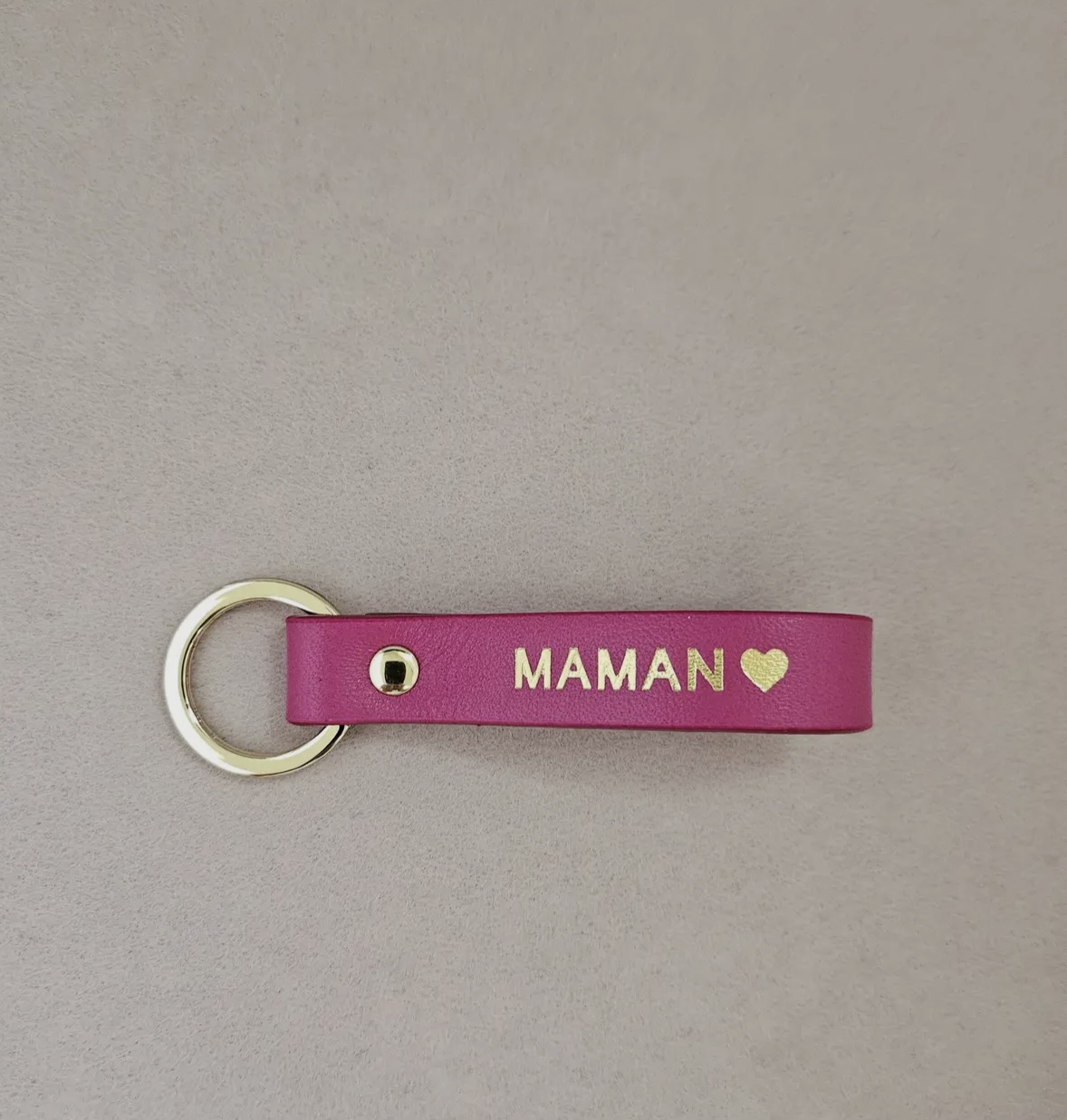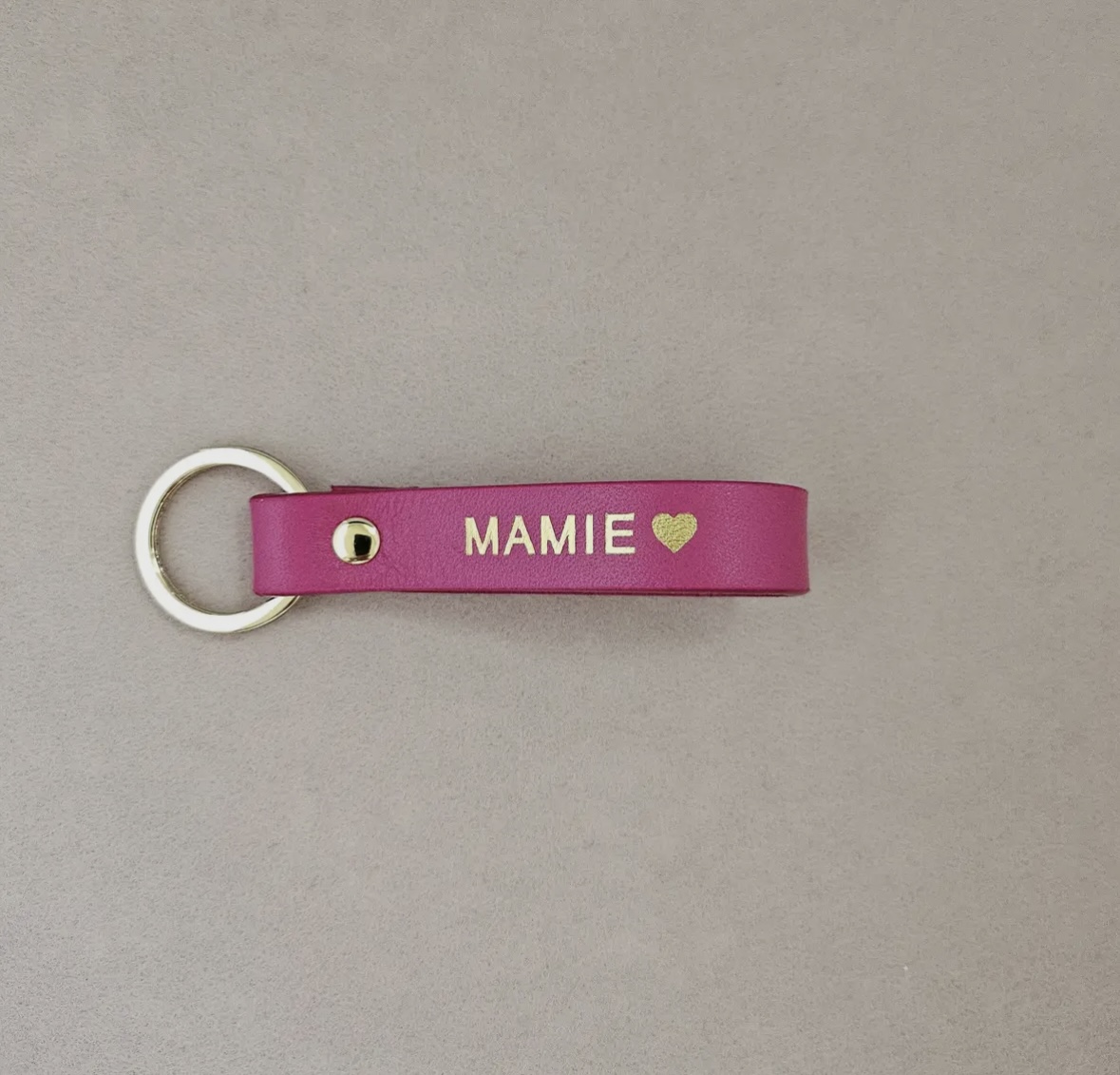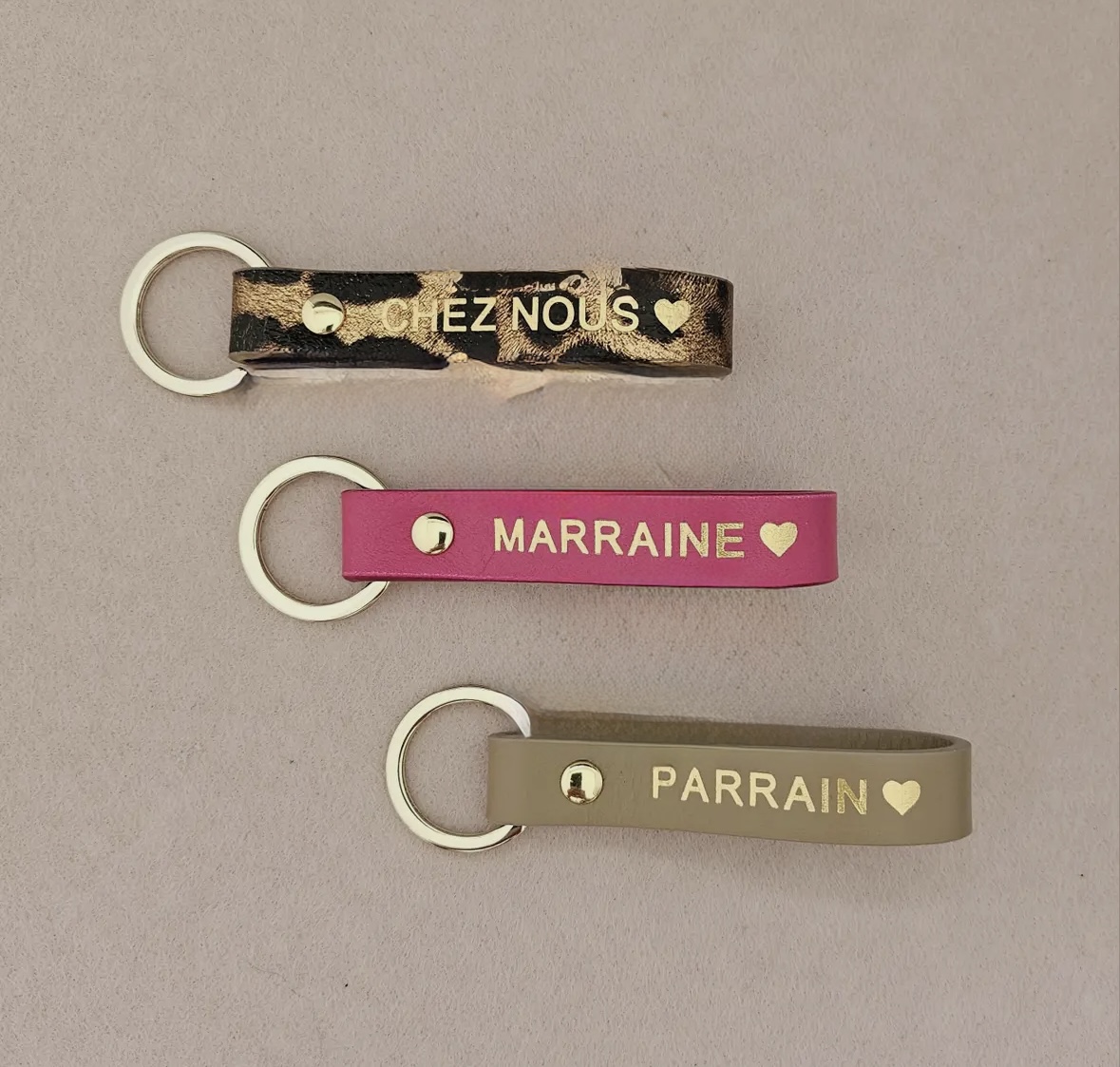 Porté clé en cuir gravé à chaud à la feuille d’or. Fabriqué en France / Tous nos modèles sont disponibles UNIQUEMENT en boutique/ 10€