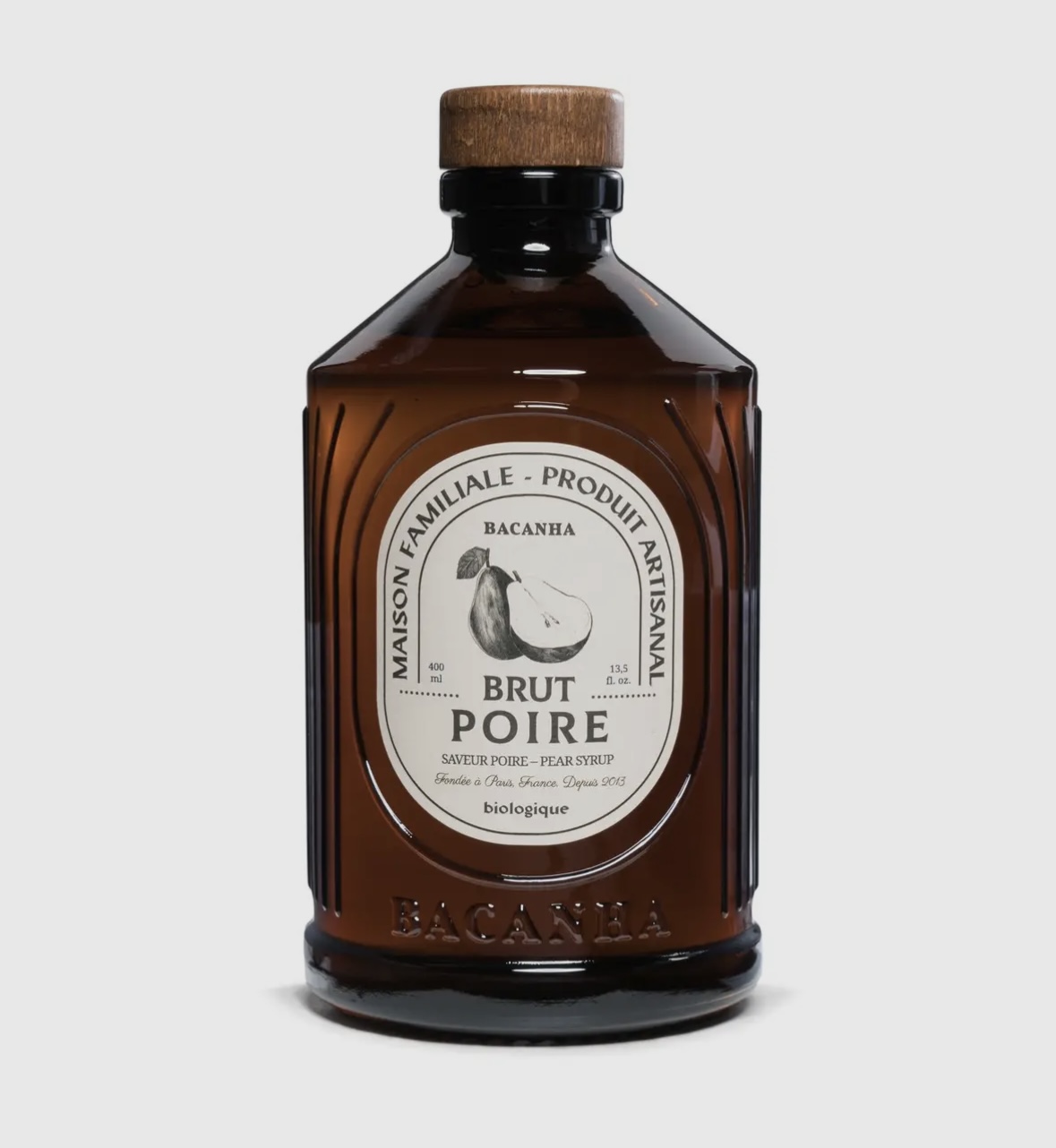 Contenance 400mL / Bouteille en verre et Bouchon en bois / Dimensions: 8 x16cm