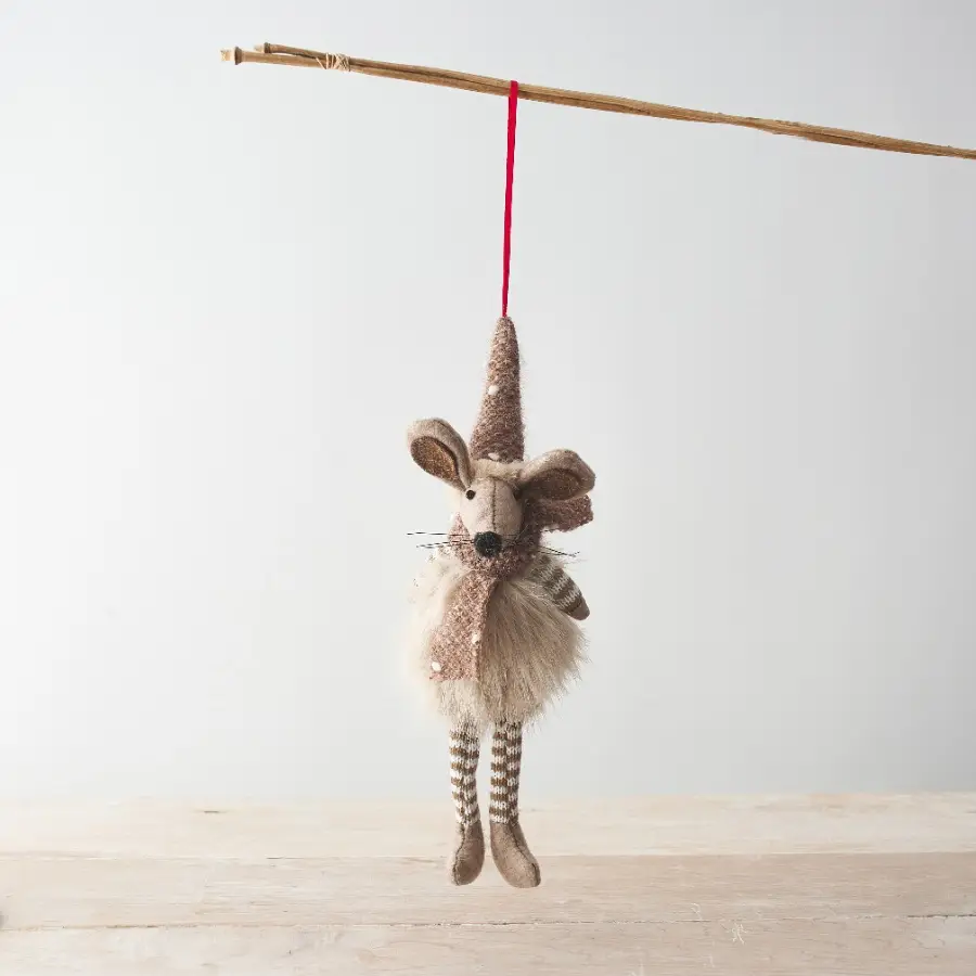 Une décoration de souris en tissu adorable et joliment détaillée avec cintre en ruban. Dimensions:30 x 10 x 8cm