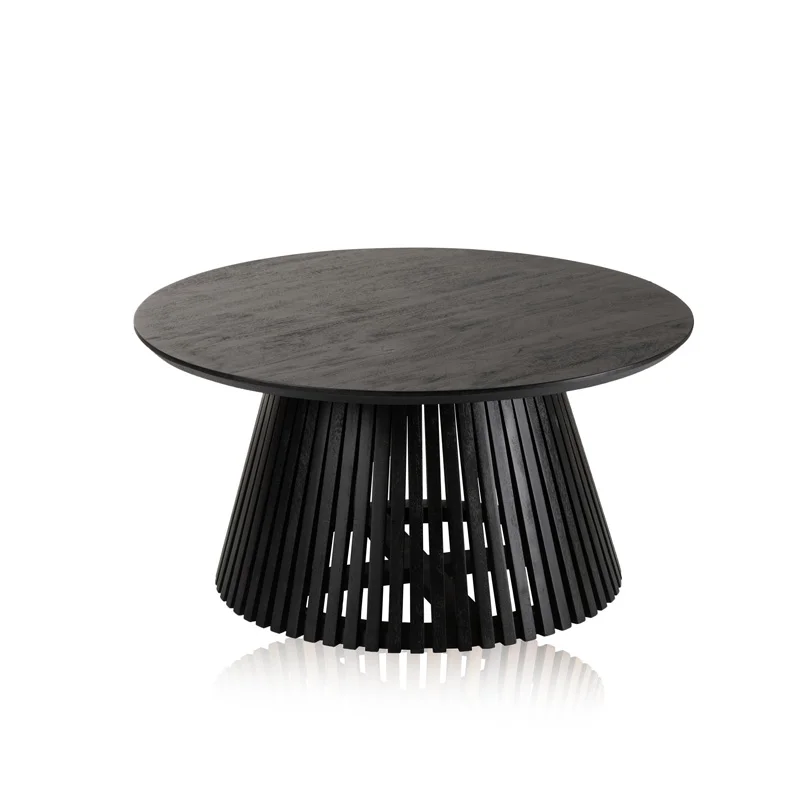 Table basse au design très réussi avec ce piètement composé de multiples tasseaux de bois / À placer en accumulation dans un salon, en bout de canapé ou seule. Existe en 2 tailles. Disponible également en noir /
